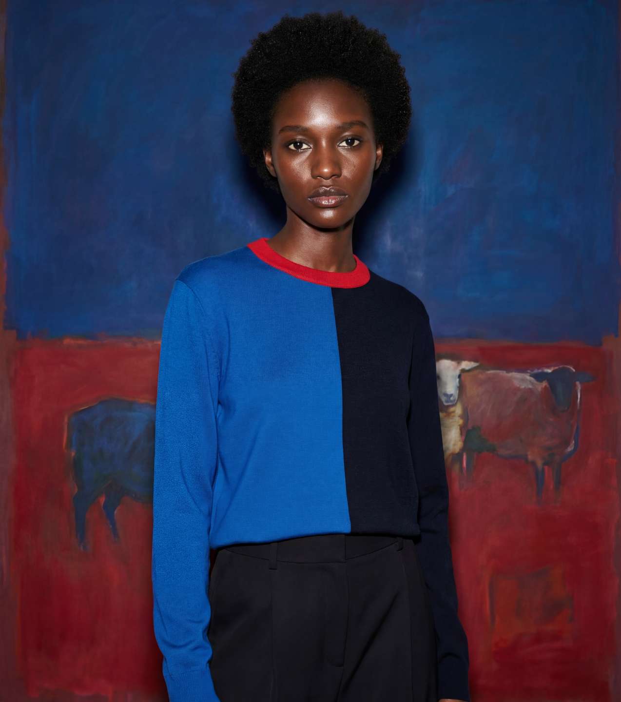 A statement — done quietly. The colourblocking adds contrast and character without turning it into a costume. Balanced, modern, and just playful enough to feel fresh. It’s for days when you want to keep things simple, but not boring.